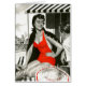 Artista: mulher do desconhecido | no fato de banho vermelho que fala aos homens na piscina