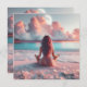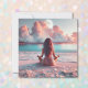 Cartão Mulher Linda Meditando na Coberta da Praia