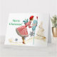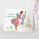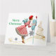 O Natal como parecia na década de 1950 com esta trabalho de arte retrô de uma senhora vestida com um vestido de cheio em vermelho e verde.