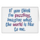 " Se você pensa que eu estou confundindo, imagino o que o mundo é como a mim". Este design foi criado com as crianças especiais das necessidades na mente para aquelas que não tomam o momento dos compreender. Você pode encontrar este design em t-shirt, em ímãs, em canecas, em botões, em presentes e em muito mais!
