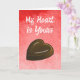 My Heart is Yours Valentine's Day greeting card with a sweet chocolate heart on a red background for a romantic girlfriend or wife.