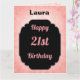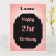 Cartão Na moda, rosa e aniversário de 21 anos preto