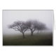 Uma linha de coro de árvores de maçã que desvanecem-se em uma manhã enevoada do inverno.