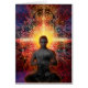 Equipe o assento com mãos em Namaskar com luz brilhante colorida no fundo. Por Daniel B. Holeman.