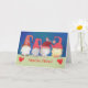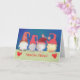 Quatro gnomos engraçados estão de pé seguidos, prontos para enviar bons desejos no Dia do Namorados. Cada gnomo tem um chapéu diferente, e um pássaro vermelho é pregado no topo de um dos chapéus de gnomo. Dois corações vermelhos com bolinhas estão em ambos os lados da mensagem do Namorados. Um cartão perfeito para enviar no dia do Namorados!
