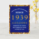 Cartão de aniversário azul e Dourado para essas nasceres especiais em 1939.Personalize facilmente o texto na frente e no interior deste cartão de aniversário usando o modelo fornecido. Parte da faixa de padrões de configuração de cartões de saudação.