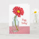 Margarida de bolinhas vermelha e branca numa garrafa de safena.