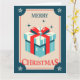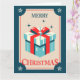 Este cartão de Natal de estilo vintage apresenta uma caixa de presentes festiva embrulhada num arco vermelho. A frase "Feliz Natal" acrescenta um toque alegre, capturando o espírito de feriado num design clássico.