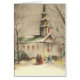 Vintage ilustrando a imagem de Natal mostrando uma igreja no inverno com neve.