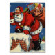 Vintage ilustra imagem de Natal com Papai Noel descendo a chaminé com um cheio de brinquedos na véspera de Natal.