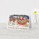 Cartão Natal Antigo, Papai Noel Alegre com Trenó
