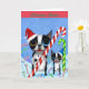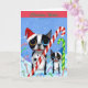 Cartão Natal Boston Terrier Cogs Candy Cane Santa Hat