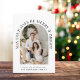 Cartão de saudação dobrado de Natal moderno, com sua foto em um quadro de arco cercado por "Que Seus Dias Sejam Felizes e Brilhantes" em tipografia elegante. Na dentro, personalize suas saudações e nomes em uma simples tipografia.