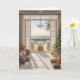 Este sofisticado cartão de Natal apresenta uma visão serena do oceano, enquadrada por elegantes portas francesas, com ornamentos de ouro e uma bela árvore de natal decorada, acrescentando um brilho festivo. O brilho quente da luz costeira reflete sobre a decoração do ouro, criando uma mistura perfeita de tranquilidade e glamour de férias. Ideal para aqueles que amam tanto o luxo quanto o oceano, esta carta traz a magia de Natal com uma reviravolta costeira.
