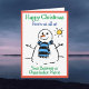Feliz Natal para um Arquiteto. Cartoon engraçado de um boneco de neve no sol de inverno. Adicionar uma mensagem do remetente. Placa de médio porte.