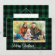 Um belo estilo rústico, xadrez verde - cartão de férias tartan com roteiro de caligrafia "Feliz Natal", seu nome de família, ano ou outro texto e sua foto de família. Personalize sua mensagem na parte traseira do cartão para o toque perfeito.