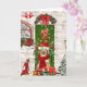 Cachorro Sheltie sentado fora de casa decorada com coroa de Natal, árvore de Natal é uma ideia perfeita de presente de Natal para amantes de cães.