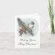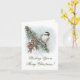 Uma aquarela deslumbrante e caprichosa de um chapim pousado num ramo de pinheiro será uma escolha maravilhosa para os cartões de Natal deste ano!