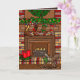 Cartões de Natal personalizados. Edite a mensagem no dentro da placa. O país desenhado à mão e os ocidentais têm um cartão de feriado com botas de desenho animado penduradas no manto de lareira em vez de meias.