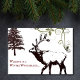 Este cartão de cartões de natal de inverno apresenta um belo alce desenhado à mão... caminhando numa terra maravilhosa de inverno. Saudação dentro - "Desejando-lhe uma bela temporada de Férias, do nosso Paraíso Feriado até ao seu. Feliz Natal e Feliz ano novo!" - A saudação pode ser personalizada para ler como quiser. Feliz Feriados!