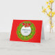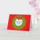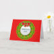 Este cartão Feriado de Natal é criado artificialmente com uma coroa abstrato e arco vermelho. É uma carta alegre. O texto no centro de cor prateada pode ser personalizado. A coroa está sobre fundo vermelho e isso também pode ser mudado.
