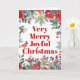 Botânica russa de inverno Muito Feliz Joyful Tendy Natal trendy grande roteiro tipografia carta dobrada de feriado com arbustos vermelhos e bordas verdes de pínus cones, bagas, boughs e folhagem em um claro fundo branco. ++++++++++ Fácil de personalizar com seus desejos, texto e assinatura na frente e no dentro!