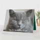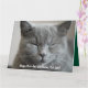 Feliz cartão de Natal Purr perfeito; perfeito para amantes de gatos! Este cartão apresenta um gato cinza tranquilo em uma soneca relaxada e confortável. Captura a beleza tranquila dos gatos nos seus momentos mais serenos. Design totalmente personalizável. mantenha esta gatinho de cinza bonita ou personalize a foto e a mensagem do cartão com a sua própria foto. Feliz Natal!
