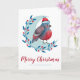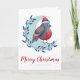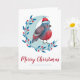 Cartão de Natal personalizado fofo com uma ilustração em aquarela de um pássaro na lua.