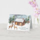 Este design ilustra a aquarela da cena da floresta de inverno - os abetos, a cabana-de-coleira e dois cervídeos. Você pode ajustar o texto de acordo com sua necessidade