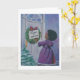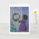 Características de design do cartão do natal vintage uma menina do afro-americano que está na frente da porta a uma casa que admira uma grinalda do Natal na porta. Guardara um sinal que diga, "de minha casa a sua casa." Há neve na terra, e empacotou acima em um casaco roxo com a guarnição branca da pele. A mensagem no interior do cartão diz, "um desejo do Natal é-lhe enviado que todos seus sonhos do Natal vêm verdadeiro."