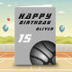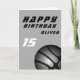 Bola Negra De Basquete Esportiva Boys Feliz Cartão De Aniversário. Cartão de aniversário de basquete moderno para quem ama basquete. Personalize com seu nome e sua idade.