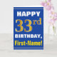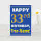 Cartão Negrito, Azul, Faux Dourado 33º Aniversário com Ca