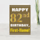 Cartão Negrito, Castanho, Faux Dourado 82º Aniversário co