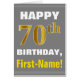 Este simples design de cartão de saudação com tema de aniversário apresenta um desejo de aniversário quente como "FELIZ 70 BIRTHDAY, First-Name!" na frente, em texto a negrito em um fundo de cinza (cinza) colorido. O número de aniversário tem uma aparência falsa e imitada de cor dourada. O nome na frente pode ser personalizado. O dentro apresenta uma mensagem de aniversário que pode ser personalizada. Um cartão de boas-vindas como este poderia ser uma maneira divertida de fazer votos de aniversário a alguém que comemora seu setuagésimo aniversário. [~Z0000283]