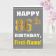 Cartão Negrito, Cinza, Faux Dourado 86. Aniversário com C