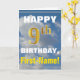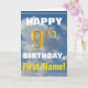 Este simples design de cartão de saudação com tema de aniversário apresenta um desejo quente de aniversário como "HAPPY 9th BIRTHDAY, First-Name!" na frente, em texto a negrito sobre um fundo que mostra um céu azul com nuvens brancas e cinzas. O número de aniversário tem uma aparência falsa e imitada de cor dourada. O nome na frente pode ser personalizado. O dentro apresenta uma mensagem de aniversário que pode ser personalizada. Um cartão de boas-vindas como este pode ser uma maneira divertida de fazer votos de aniversário a alguém que comemora o seu nono aniversário. [~Z0000284]