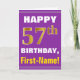 Este simples design de cartão de saudação com tema de aniversário apresenta um desejo de aniversário quente como "HAPPY 57th BIRTHDAY, First-Name!" na frente, em texto em negrito sobre fundo de cor roxa. O número de aniversário tem uma aparência falsa e imitada de cor dourada. O nome na frente pode ser personalizado. O dentro apresenta uma mensagem de aniversário personalizável. Um cartão de boas-vindas como este poderia ser uma maneira divertida de fazer votos de aniversário a alguém que comemora seus cinquenta e sete anos. [~Z0000277]