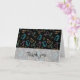 Obrigado de Natal você cumprimenta cartões com um padrão de equipamento de laboratório em néon rosa e azul sobre fundo preto. Você pode personalizar o texto com suas próprias informações. Desenhada por Patricia Alvarez.