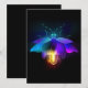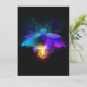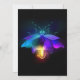 Voz mecânica, antiga, com lâmpada e asas finas brilha cor de laranja, roxo, turquesa sobre fundo preto. Estilo Steampunk.