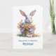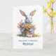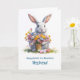 A delightful Easter card for a nephew featuring a joyful rabbit, colorful eggs, and blossoming spring flowers, paired with a fun and lighthearted message inside.