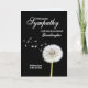 Envie sua simpatia pela perda de uma neta. Um relógio de dandelion sereno, suas sementes flutuando suavemente ao vento, contra um pano de fundo escuro. O cartão evoca paz, memória e o fluxo natural da vida.