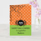 Um cartão de neto de Halloween aranha, que você pode personalizar facilmente com o nome do seu neto. O dentro da carta diz "Tenha um Dia das Bruxas spooktacular!" que você pode editar facilmente se quiser. A parte de trás deste cartão de Dia das Bruxas diz Halloween 2018.