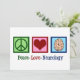 Cartão de férias de Neurologia Peace Love para um neurologista especializado em distúrbios cerebrais e neurociência. Cartão de marketing de neurocirurgião bonito.