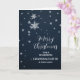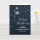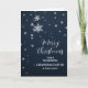 Feliz Natal para a neta e sua carta de família com padrão moderno de flocos de neve em um céu azul marinho.