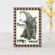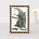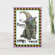 Mande saudações de Halloween com este cartão de um filhote bonito de Terra Nova vestindo uma máscara verde e um chapéu de bruxa decorado com uma aranha de bobo. Excelente para crianças de todas as idades que amam Newfy e Halloween. Tenha uma boa HOWL-oggy!