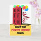 Feche a porta da frente, Niece. Este cartão de aniversário contém balões e uma porta frontal fechada ou fechada. Tem um dentro de cumprimentos de aniversário fofo. Arte, imagem e direitos de autor versos © Shoaff Ballanger Studios, 2024.