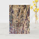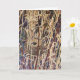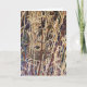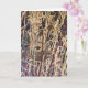 Um ninho de pássaro situado entre juncos altos e densos com várias tonalidades de marrom, amarelo e verde ao seu redor. O fundo apresenta uma mistura de tons terrosos e tons escuros, dando um efeito de camuflagem ao ninho. Use para Ninho Vazio, Páscoa e saudações de Nova Casa. Envie um para um amante da natureza. Interior: em branco