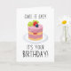 Este cartão de aniversário apresenta um design divertido e divertido, perfeito para adicionar um toque de humor à celebração. A frente mostra uma ilustração adorável de um bolo sorridente cheio de frutas frescas, acompanhado pelo trocadilho "Cake It Easy, It's Your Birthday!" em uma fonte alegre. Dentro, há espaço para uma mensagem personalizada, permitindo que você adicione sua própria saudação especial. Ideal para quem desfruta de designs reluzentes e caprichosos, esta carta combina diversão e personalização para tornar a celebração de aniversário ainda mais agradável.