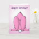 Um belo desenho de um coelho cor-de-rosa com as palavras Feliz Aniversário por cima. Perfeito para aquela menina na sua vida. Carimbo de correio correspondente disponível.