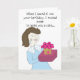 Uma moça de vestido azul segurando o bolo ou cupcake de aniversário perfeito... uma mensagem engraçada... personalize como desejado.